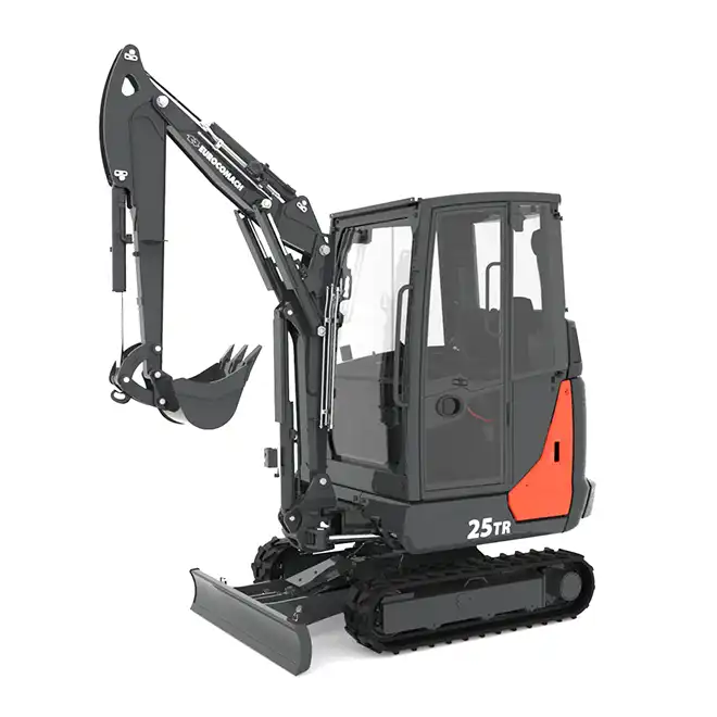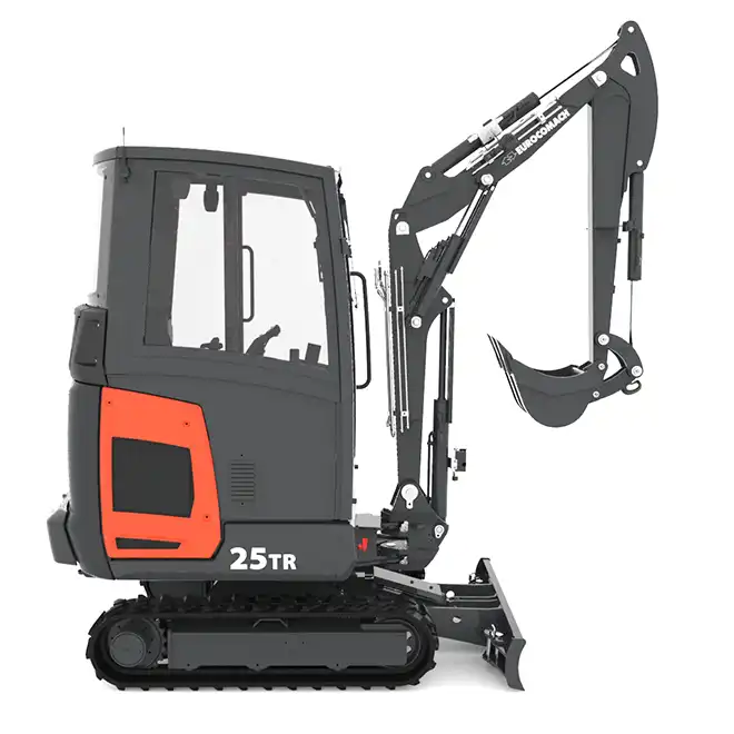 The 25TR mini-excavator features a transport weight of 24.5 quintals and stands as the ultimate machine for those demanding high performance in confined spaces. Equipped with the exclusive triple boom as standard, the 25TR delivers unprecedented agility and lifting capacity for urban maintenance, professional gardening, and complex landscaping projects.
