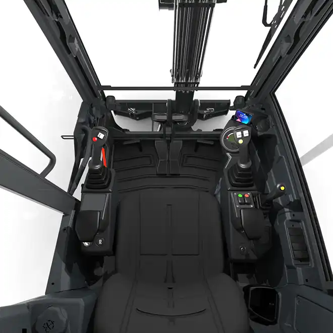 Millimetric precision and total control. The swing, triple boom, and auxiliary hydraulic system are managed via proportional electro-hydraulic rollers integrated into the joysticks. Every movement is fluid, instantaneous, and fully customizable