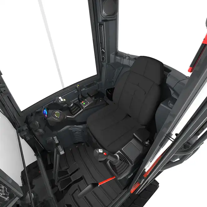 Eurocomach engineering has integrated the fuel tank into the rear to free up vital space. The result? A large, spacious, and uncompromising cab mounted on a compact machine. More operator comfort means more productivity on the jobsite