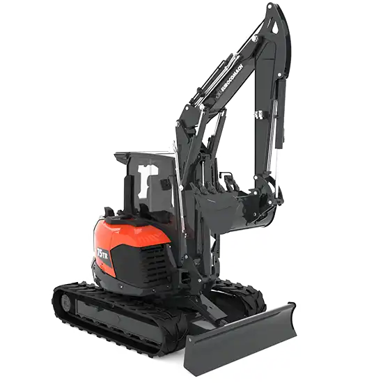 L’escavatore 75TR ha un peso di trasporto di 70 quintali e offre potenza e stabilità grazie anche e soprattutto al braccio triplice, è ideale per cantieri piccole e medie dimensioni. Progettato per scavi intensivi, questo midi escavatore cingolato garantisce prestazioni elevate e massima affidabilità sul campo.